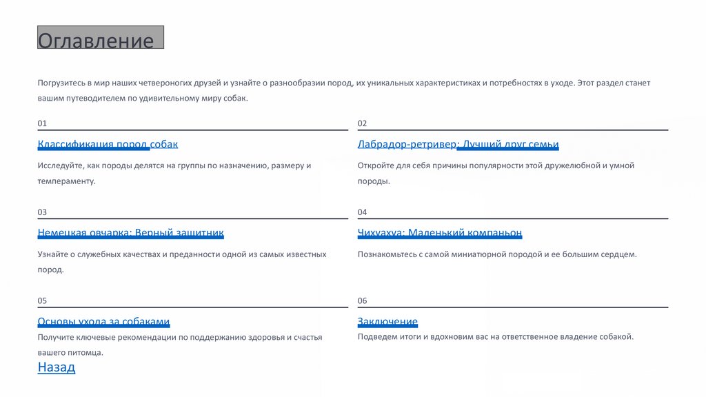 ОглавлениеПогрузитесь в мир наших четвероногих друзей и узнайте о разнообразии пород, их уникальных характеристиках и потребностях в уходе. Этот раздел станет