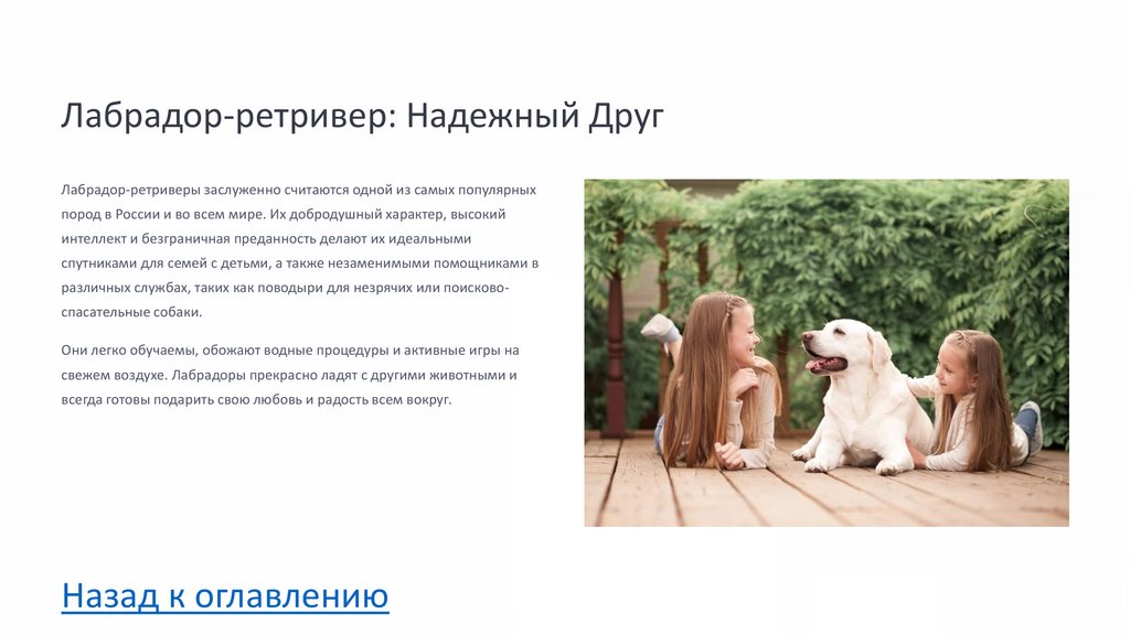 Лабрадор-ретривер: Надежный ДругЛабрадор-ретриверы заслуженно считаются одной из самых популярных