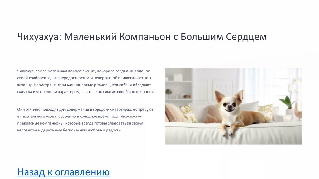 Чихуахуа: Маленький Компаньон с Большим СердцемЧихуахуа, самая маленькая порода в мире, покорила сердца миллионов