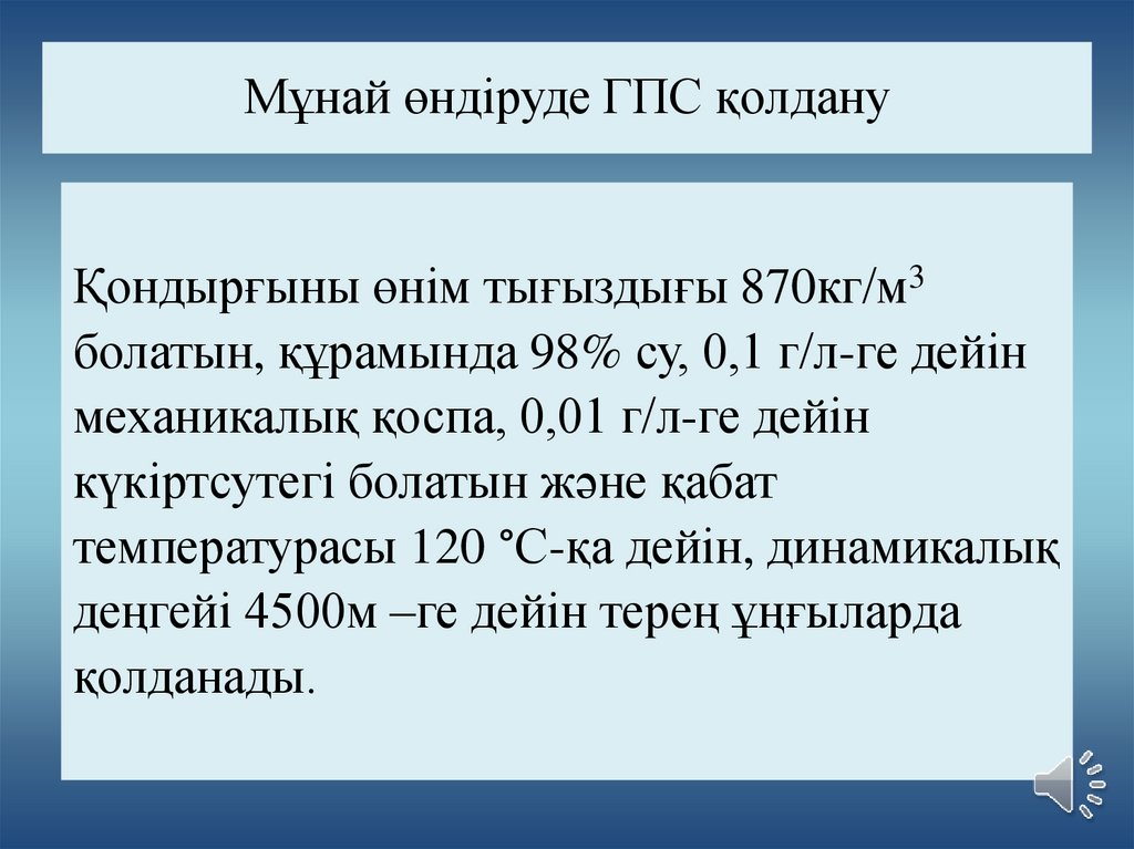 Мұнай өндіруде ГПС қолдануҚондырғыны өнім тығыздығы 870кг/м3