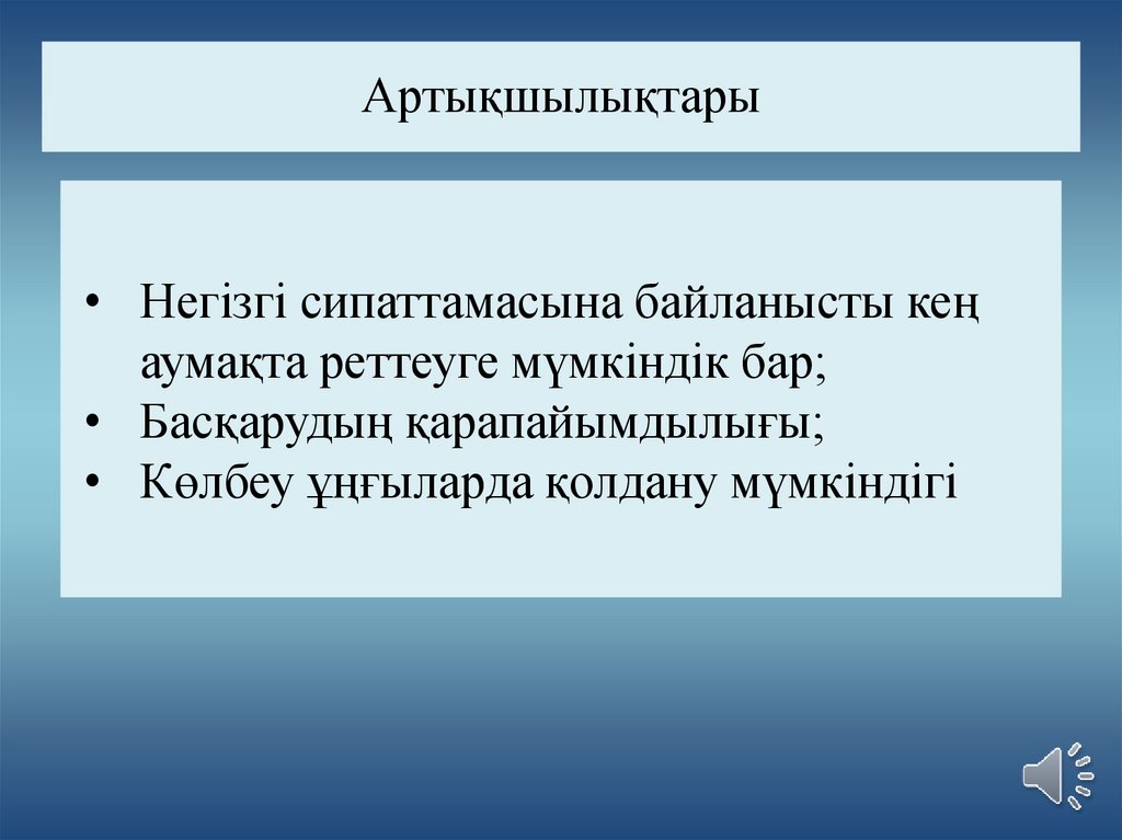 Артықшылықтары• Негізгі сипаттамасына байланысты кең