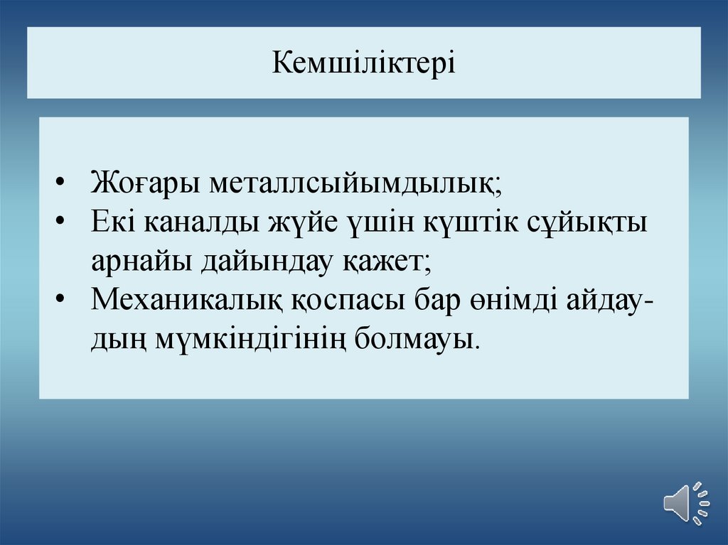 Кемшіліктері• Жоғары металлсыйымдылық;