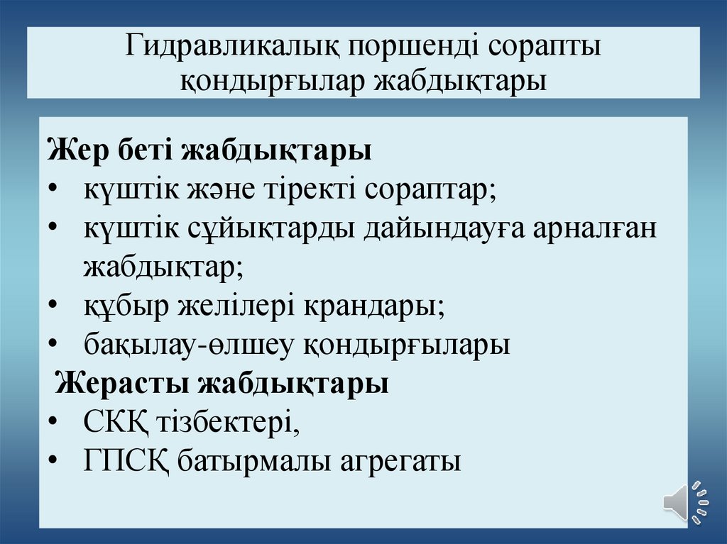 Гидравликалық поршенді сораптықондырғылар жабдықтары