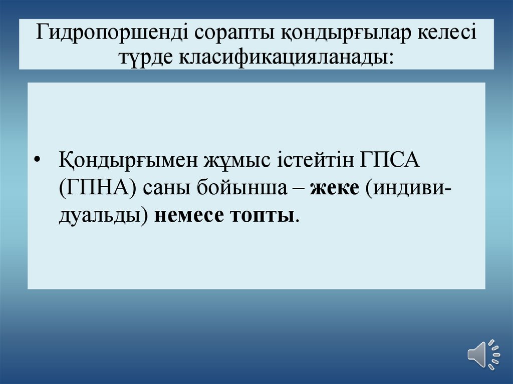 Гидропоршенді сорапты қондырғылар келесітүрде класификацияланады: