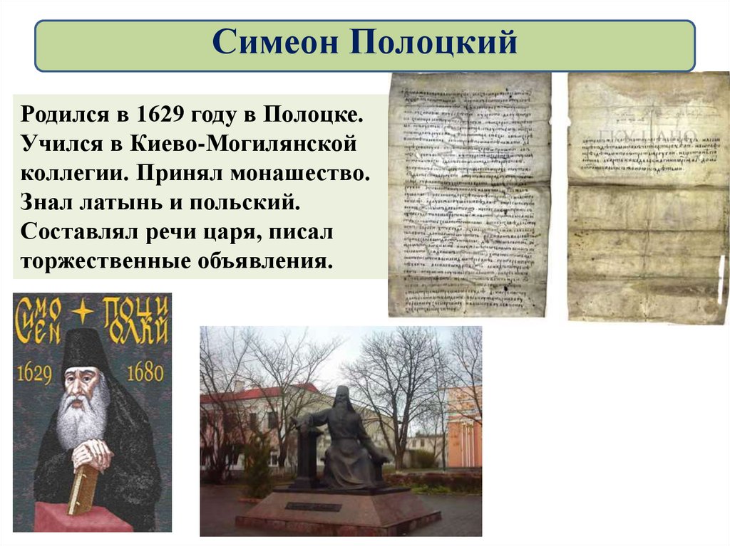 Симеон ПолоцкийРодился в 1629 году в Полоцке.