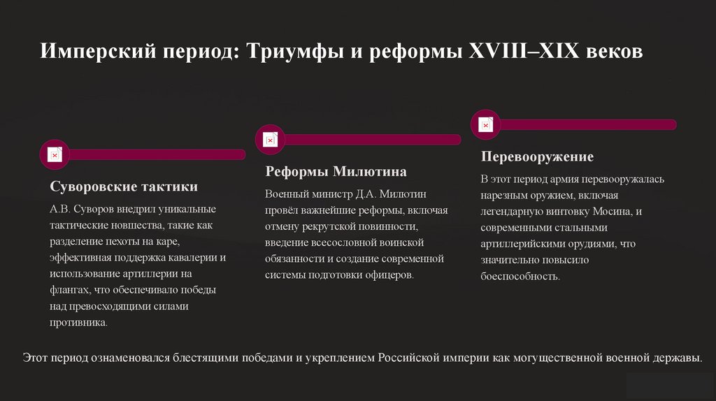 Эти реформы заложили основу для дальнейшего развития русской армии,