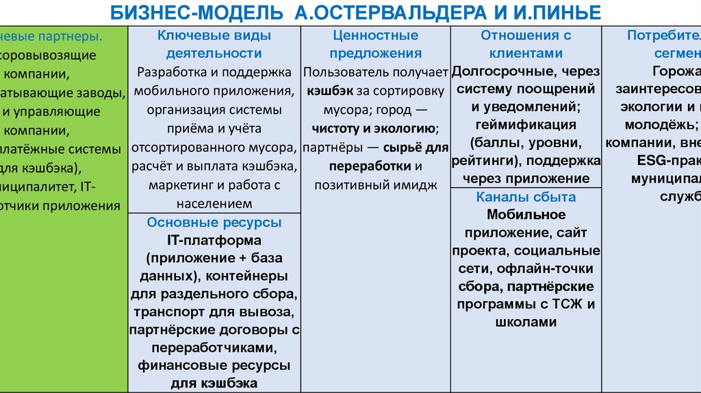 БИЗНЕС-МОДЕЛЬ А.ОСТЕРВАЛЬДЕРА И И.ПИНЬЕКлючевые виды