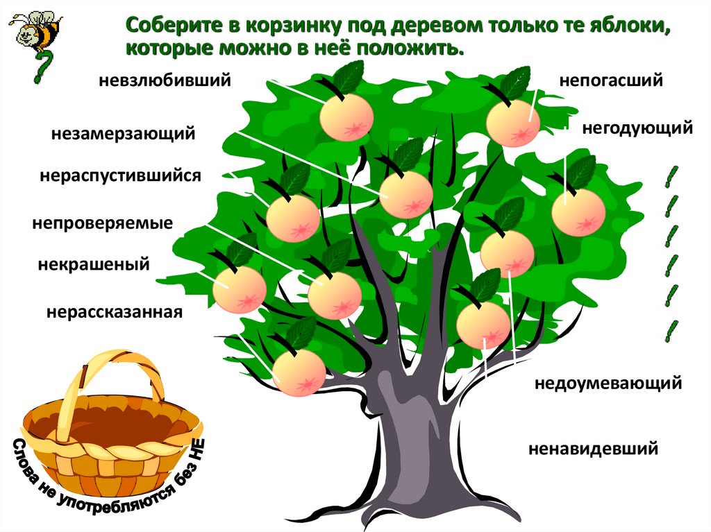 Соберите в корзинку под деревом только те яблоки,которые можно в неё положить.