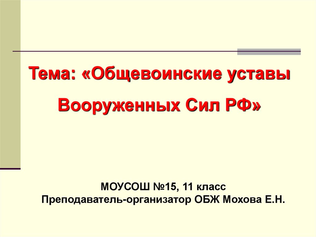 Тема: «Общевоинские уставыВооруженных Сил РФ»