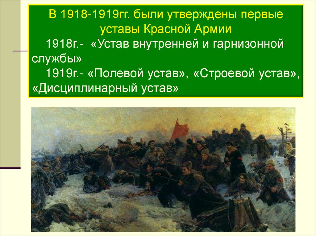 В 1918-1919гг. были утверждены первыеуставы Красной Армии