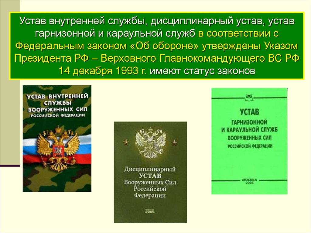 Устав внутренней службы, дисциплинарный устав, уставгарнизонной и караульной служб в соответствии с
