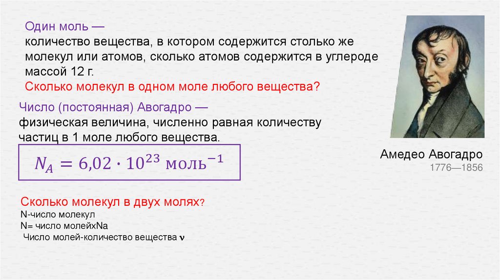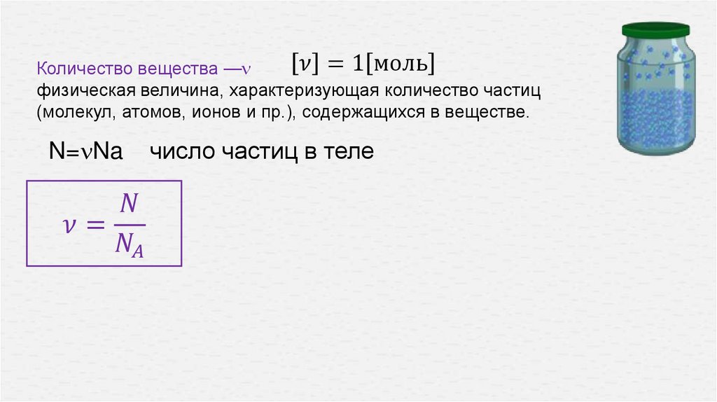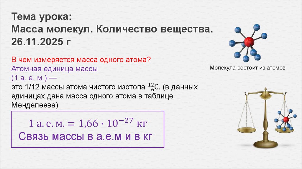 Тема урока:Масса молекул. Количество вещества.