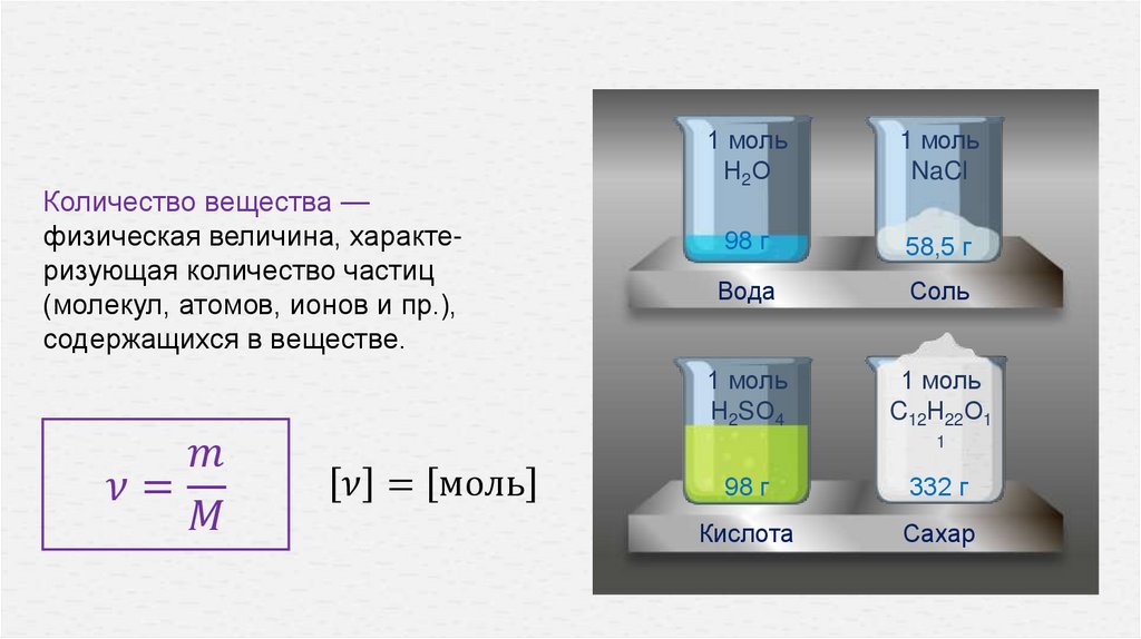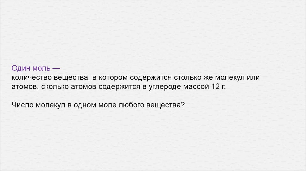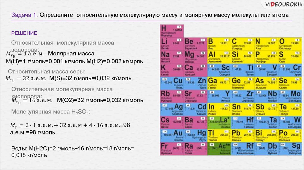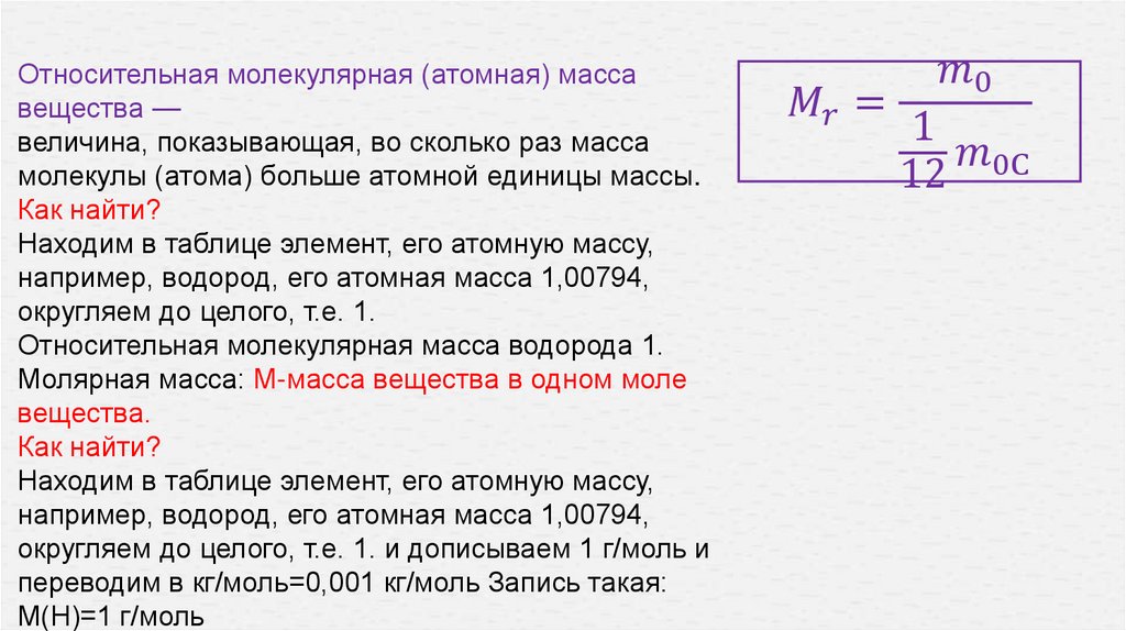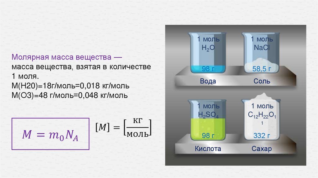 Молярная масса: М-масса вещества в одном моле