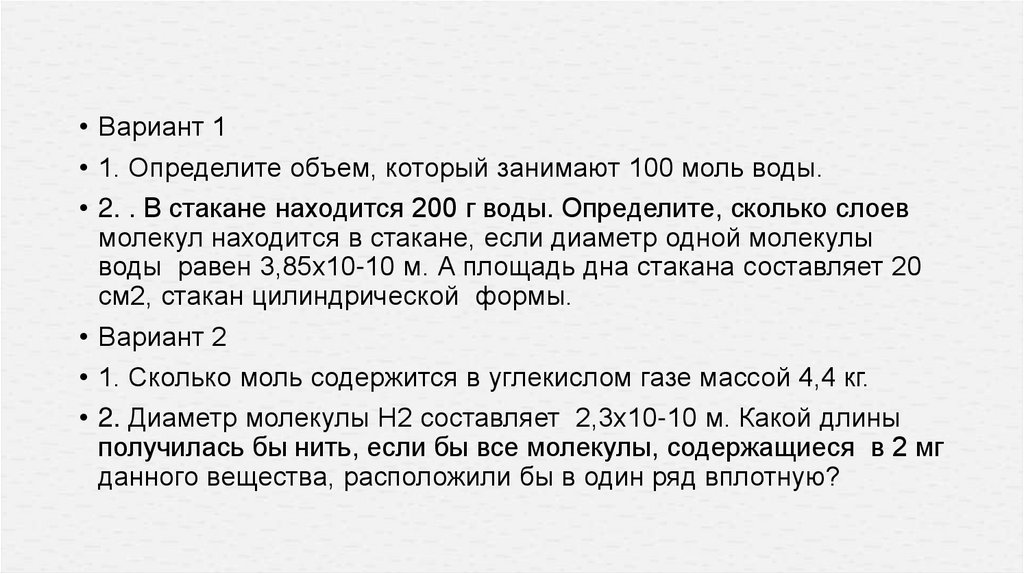 10 класс масса молекул