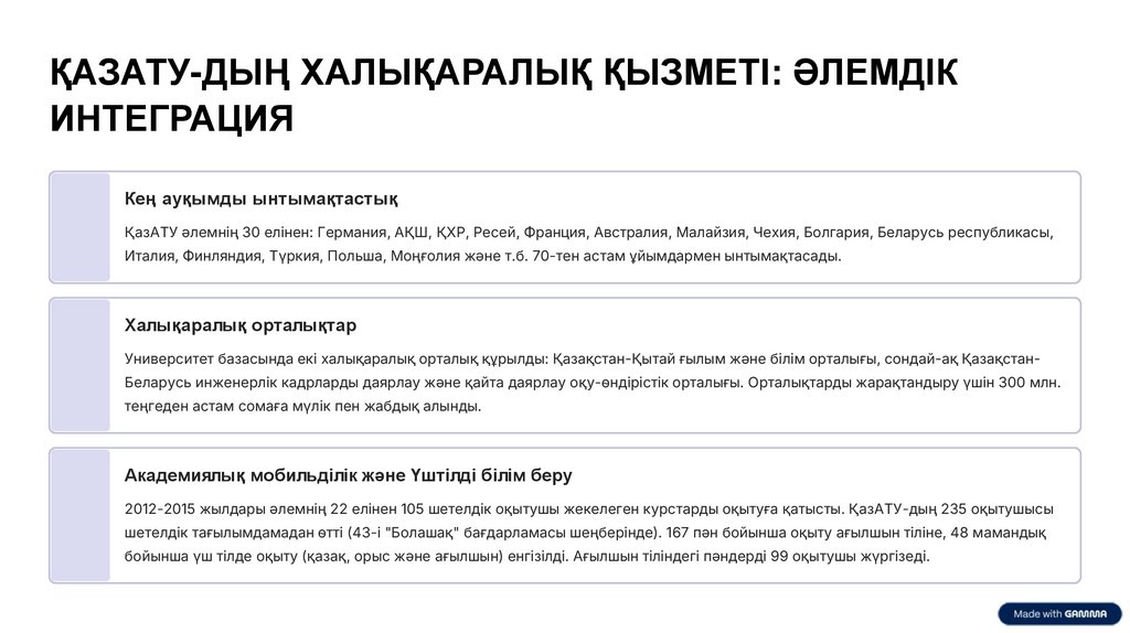 ҚАЗАТУ-ДЫҢ ХАЛЫҚАРАЛЫҚ ҚЫЗМЕТІ: ӘЛЕМДІКИНТЕГРАЦИЯ