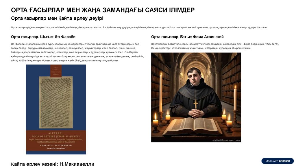 ОРТА ҒАСЫРЛАР МЕН ЖАҢА ЗАМАНДАҒЫ САЯСИ ІЛІМДЕРОрта ғасырлар мен Қайта өрлеу дәуірі