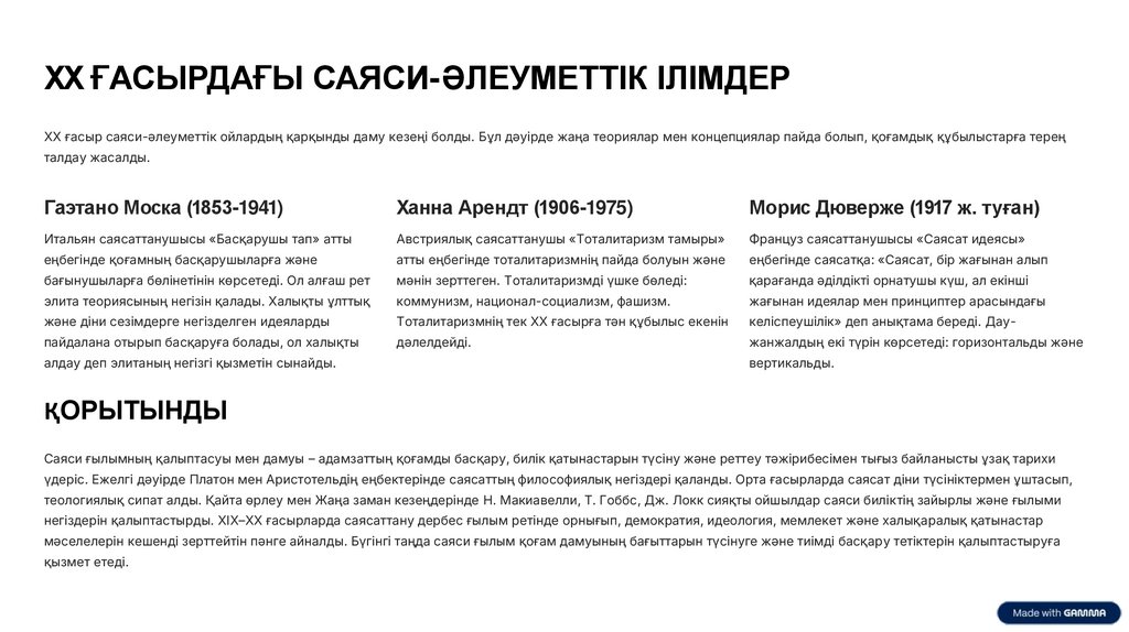 ХХ ҒАСЫРДАҒЫ САЯСИ-ӘЛЕУМЕТТІК ІЛІМДЕРХХ ғасыр саяси-әлеуметтік ойлардың қарқынды даму кезеңі болды. Бұл дәуірде жаңа теориялар мен концепциялар пайда болып, қоғамдық құбылыстарға терең