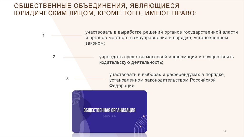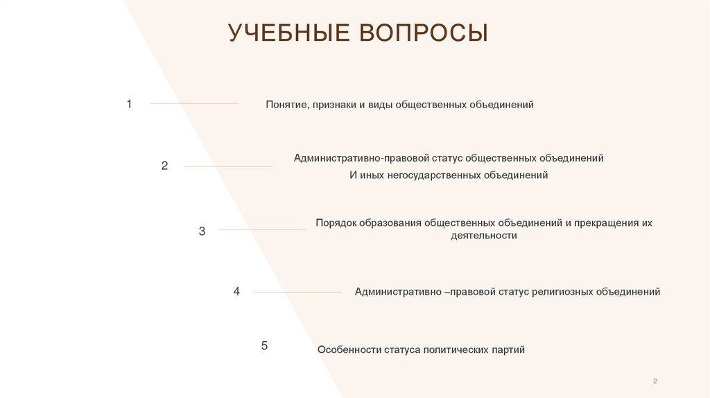 УЧЕБНЫЕ ВОПРОСЫПонятие, признаки и виды общественных объединений