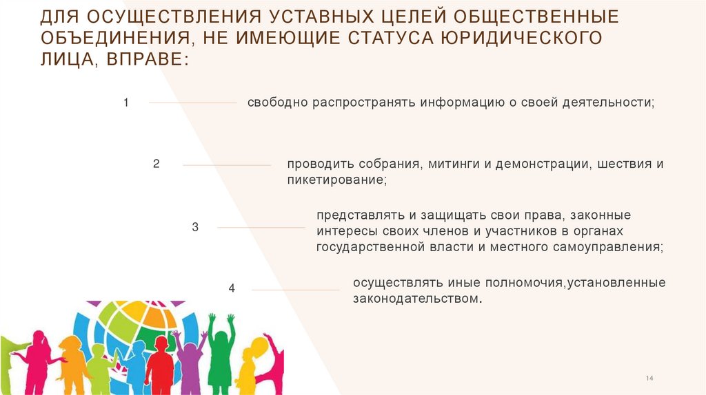 деятельности объединившихся граждан для защиты их общих интересов и достижения целей, стоящих перед организацией. Основным