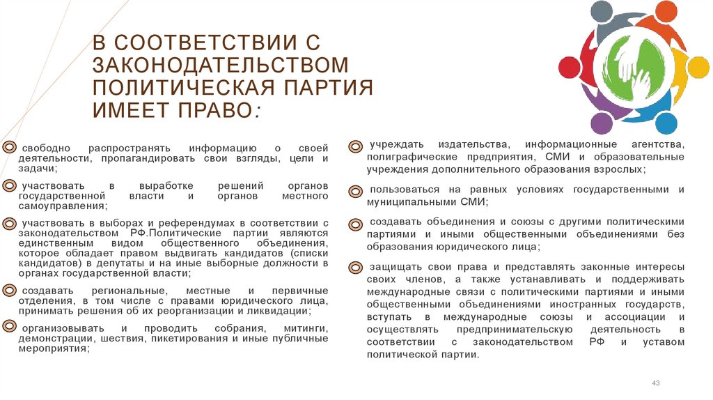 7. ФЗ от 11 июля 2001г. «О политичес ких партиях»