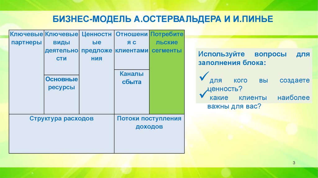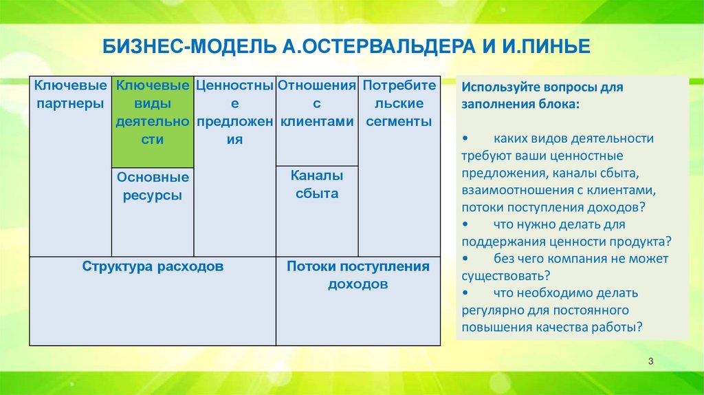 БИЗНЕС-МОДЕЛЬ А.ОСТЕРВАЛЬДЕРА И И.ПИНЬЕКлючевые Ключевые Ценностн Отношени Потребите