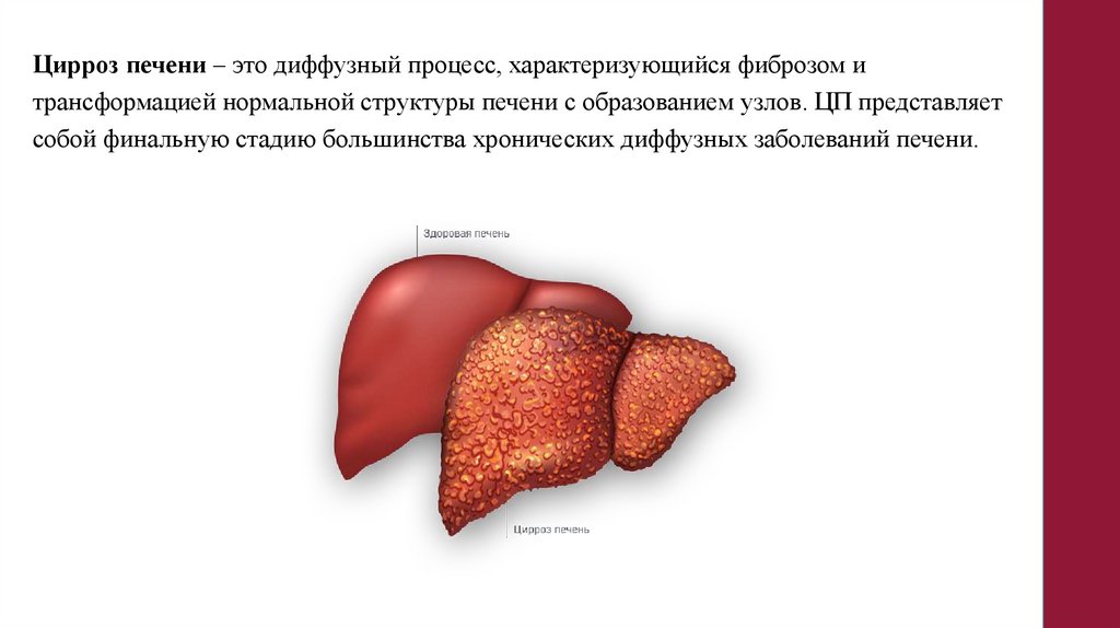 собой финальную стадию большинства хронических диффузных заболеваний печени.