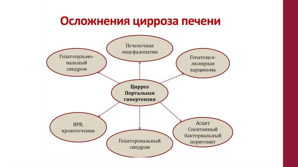 Декомпенсированный ЦП характеризуется наличием одного или нескольких клинических
