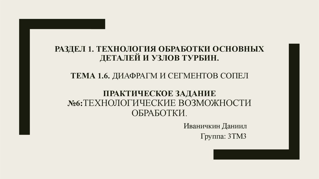 1. Раздел 1. Технология обработки основных деталей и узлов турбин. Тема 1.6. Диафрагм и сегментов сопел Практическое задание