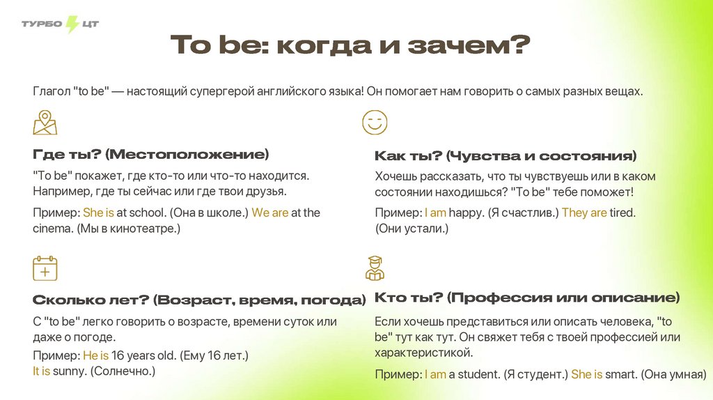 Глагол "to be" — это один из самых важных и часто используемыхглаголов в английском языке. Он имеет несколько уникальных