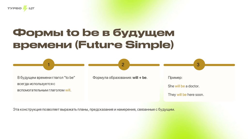 Эта конструкция позволяет выражать планы, предсказания и намерения, связанные с будущим.
