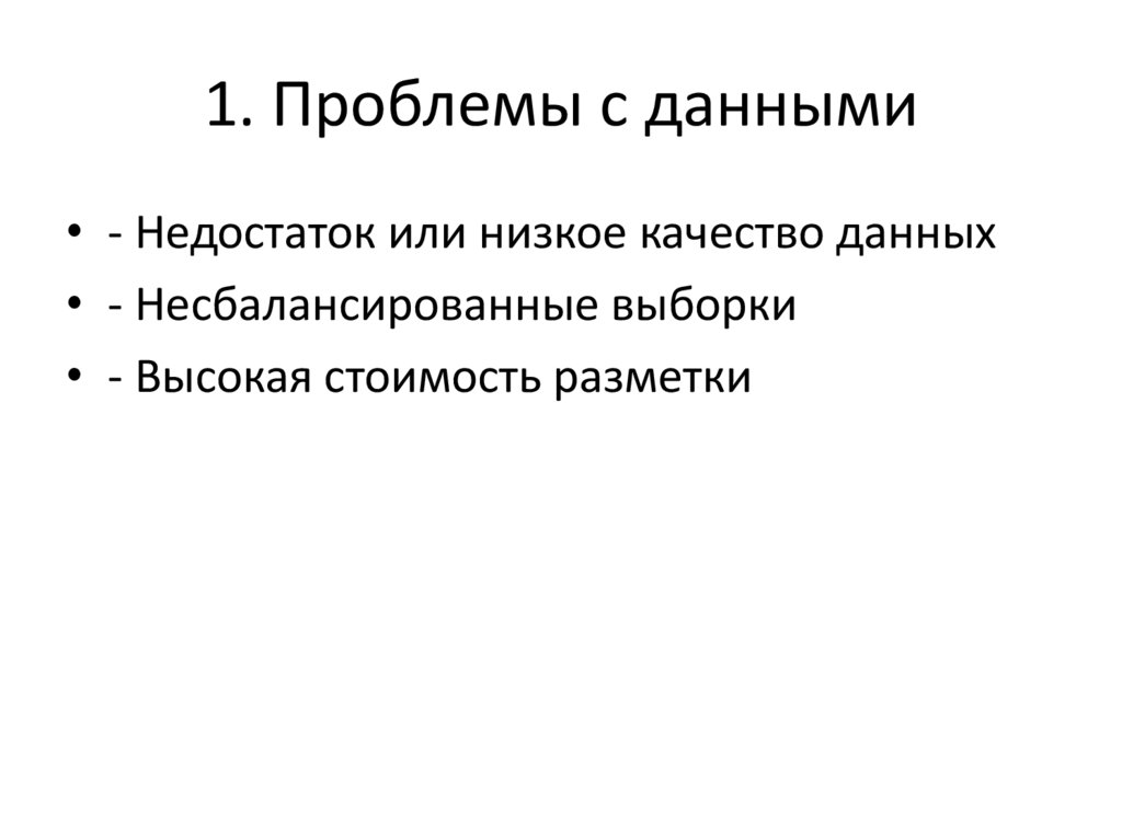 1. Проблемы с данными• - Недостаток или низкое качество данных