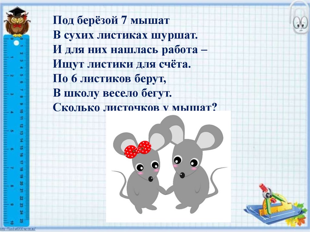 Под берёзой 7 мышатВ сухих листиках шуршат.