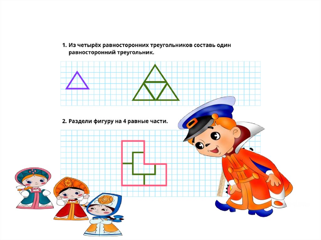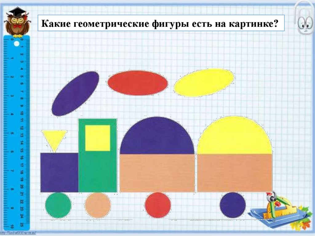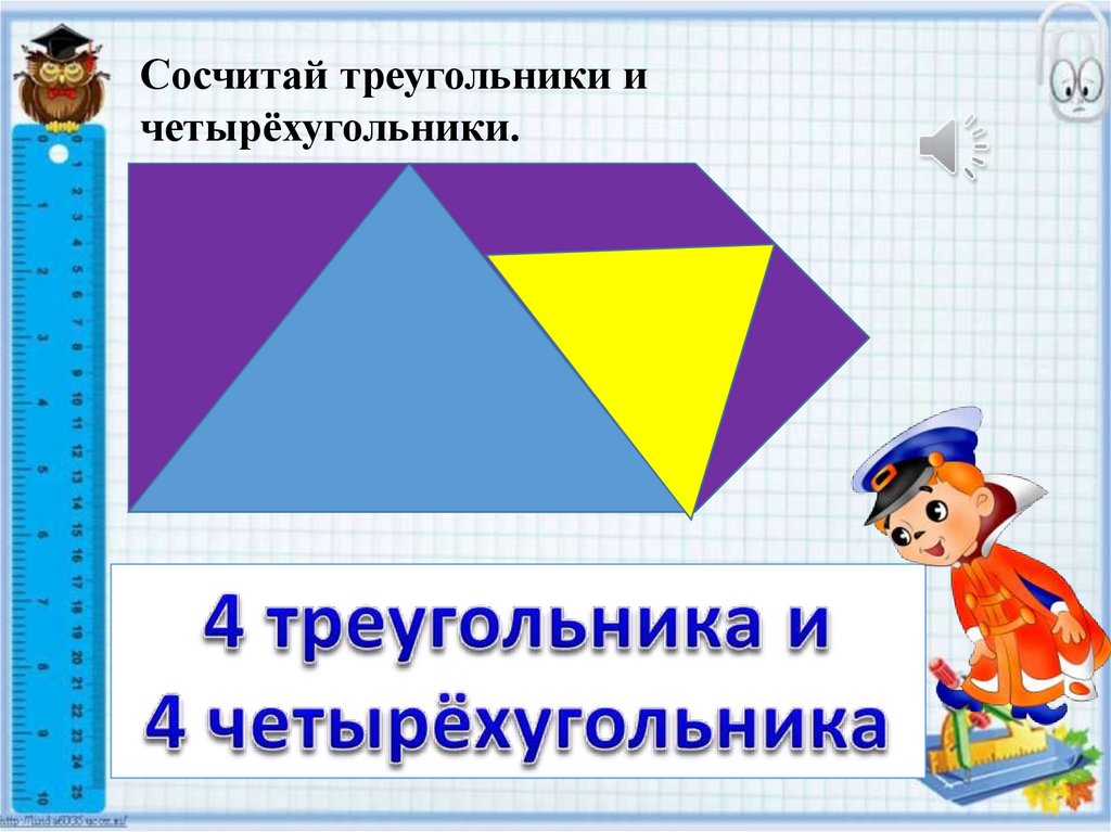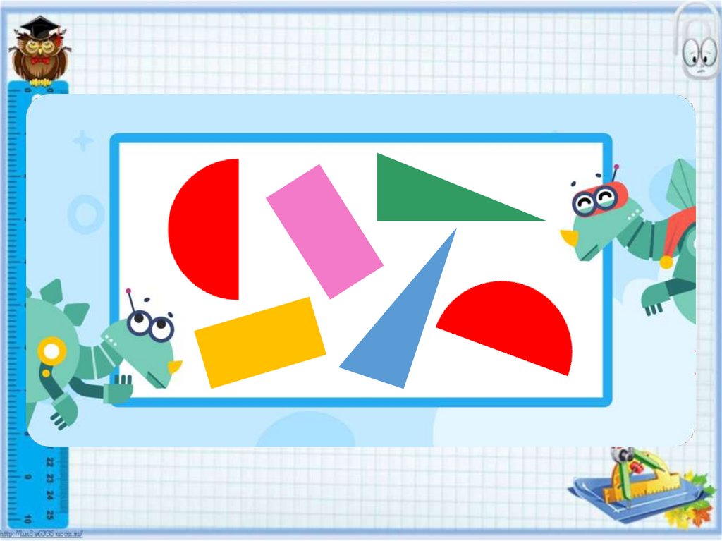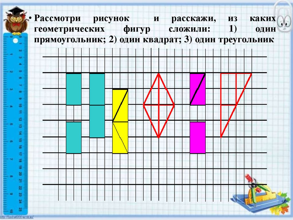 прямоугольник; 2) один квадрат; 3) один треугольник