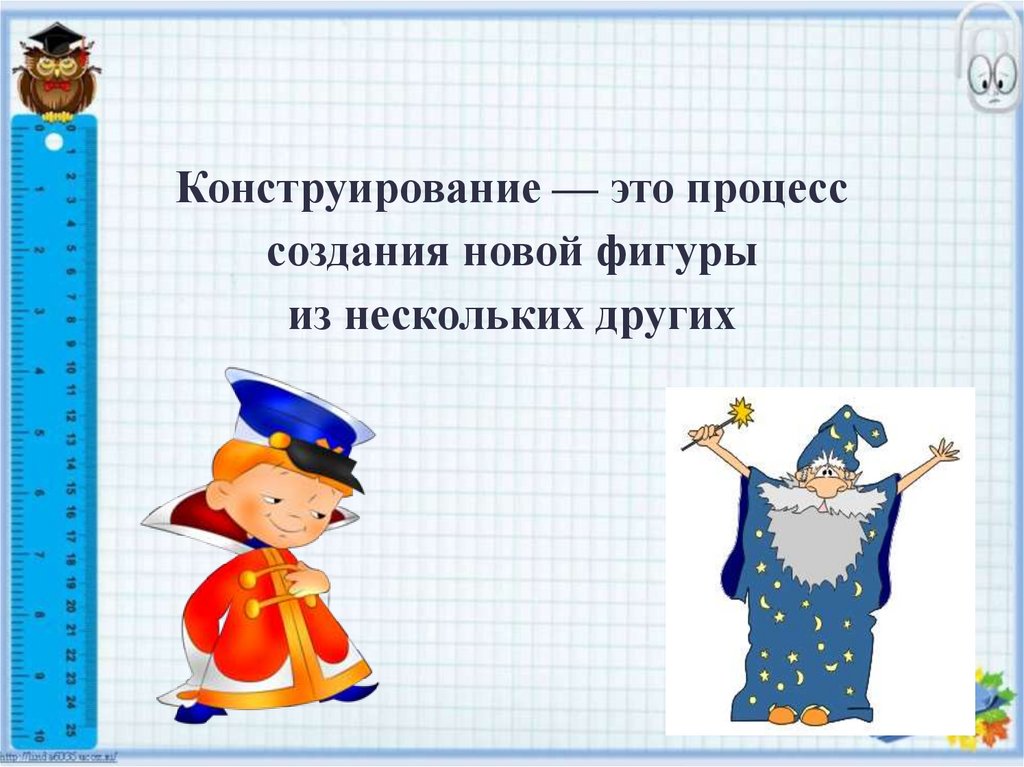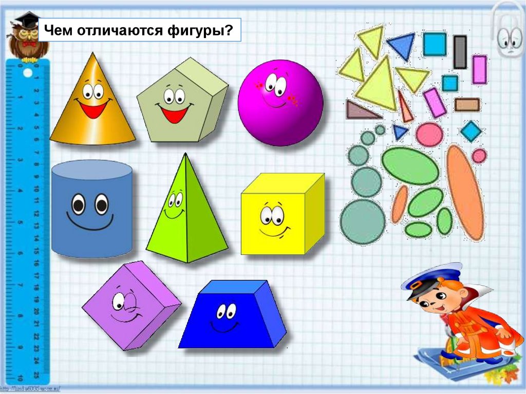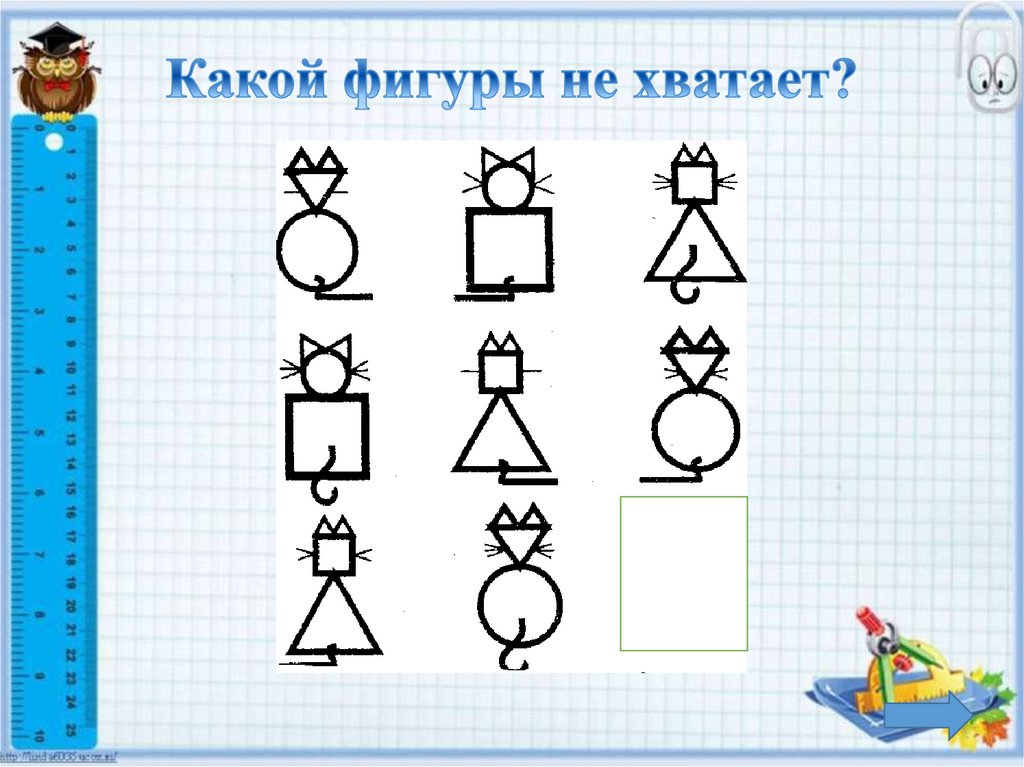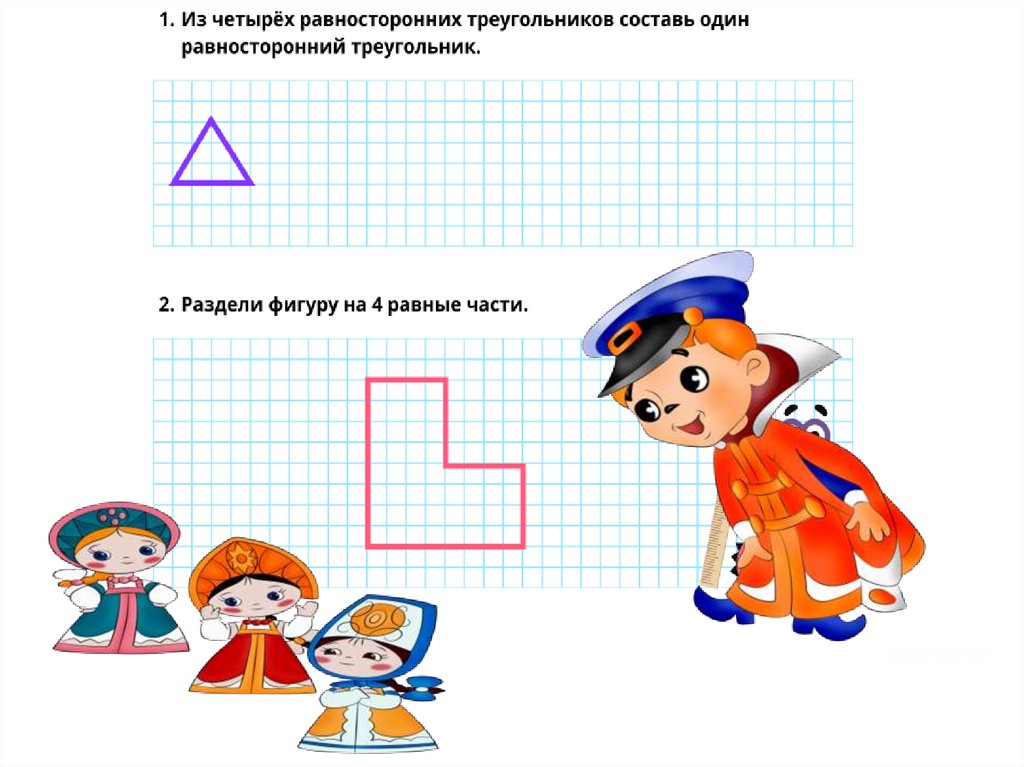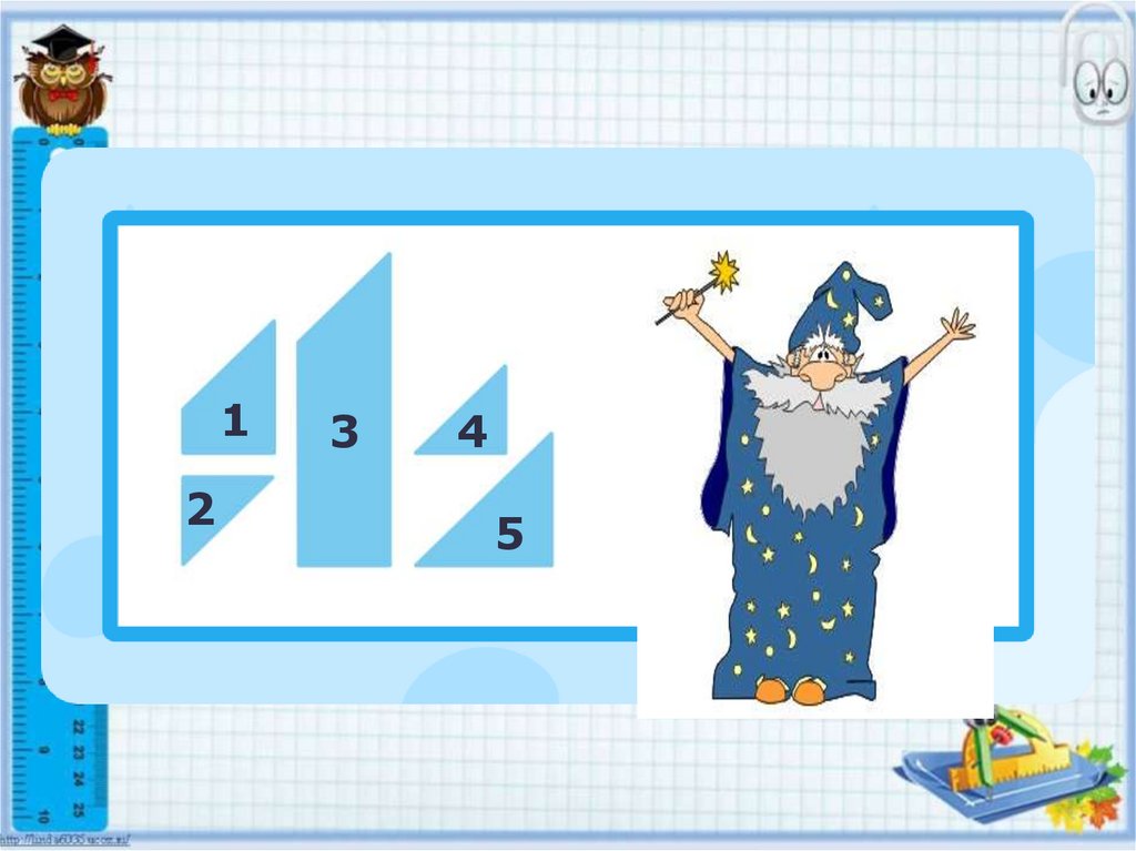 прямоугольник; 2) один квадрат; 3) один треугольник