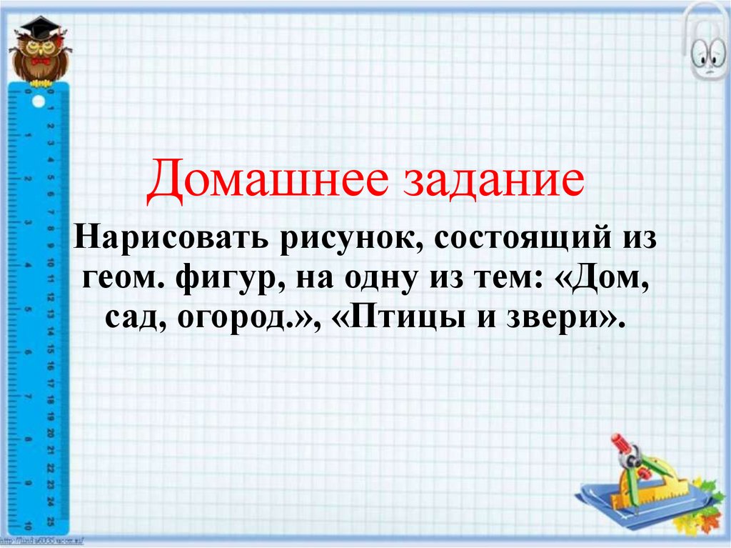 Домашнее заданиеНарисовать рисунок, состоящий из
