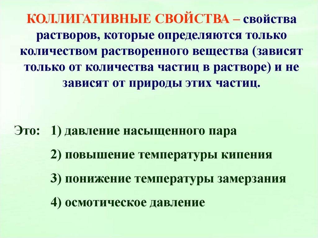 КОЛЛИГАТИВНЫЕ СВОЙСТВА – свойстварастворов, которые определяются только