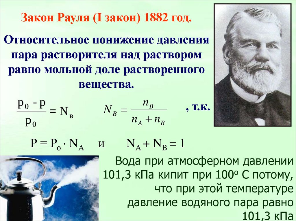 Закон Рауля (I закон) 1882 год.Относительное понижение давления