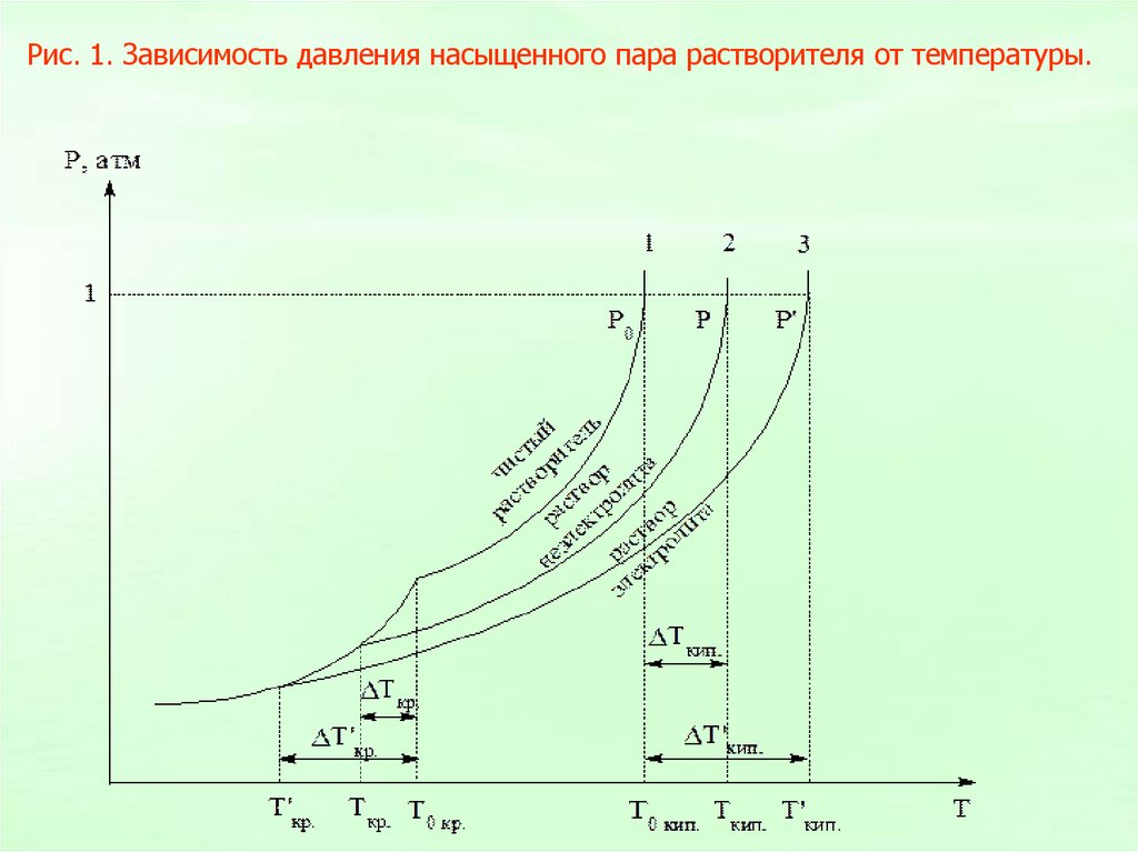 Рис. 1. Зависимость давления насыщенного пара растворителя от температуры.16.