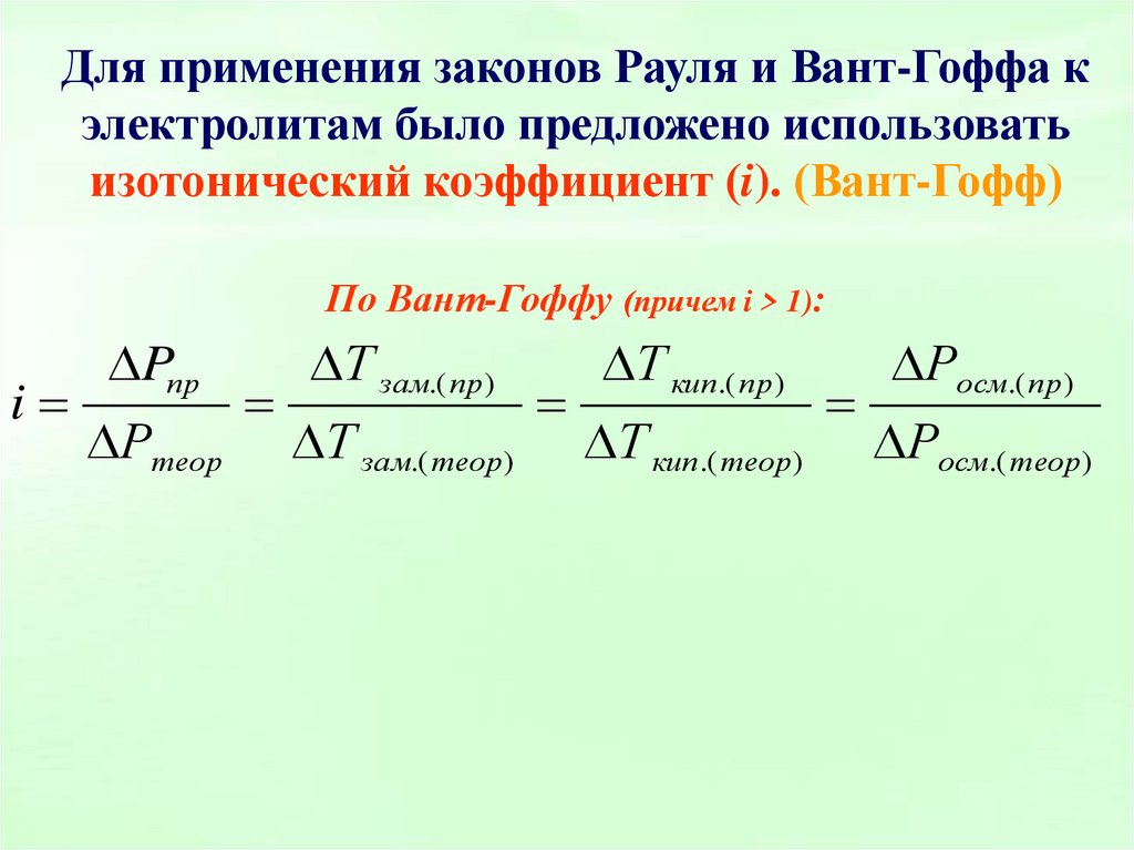 Для применения законов Рауля и Вант-Гоффа кэлектролитам было предложено использовать