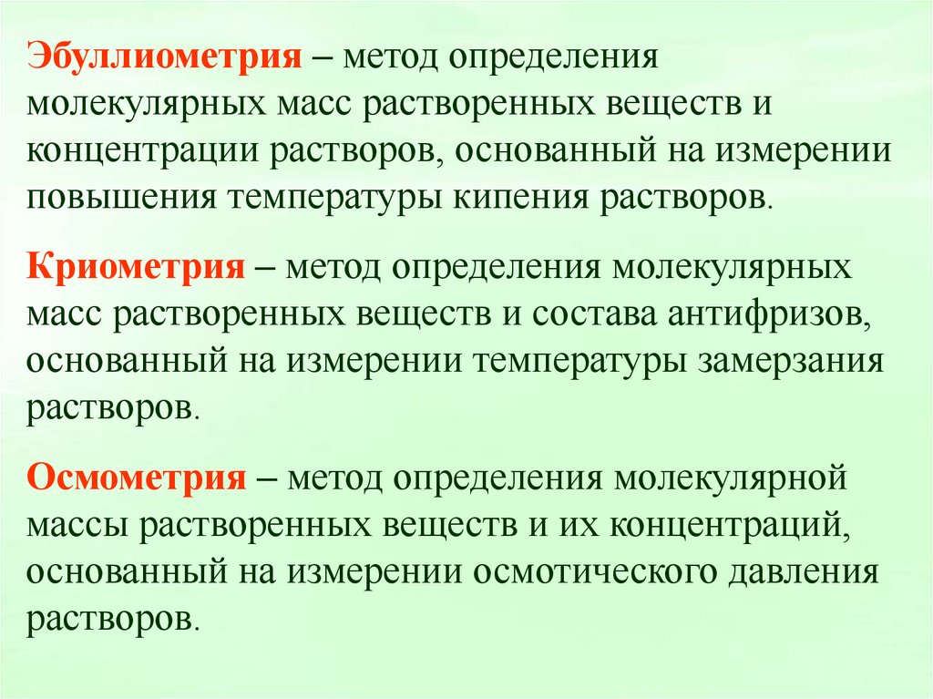 Эбуллиометрия – метод определениямолекулярных масс растворенных веществ и