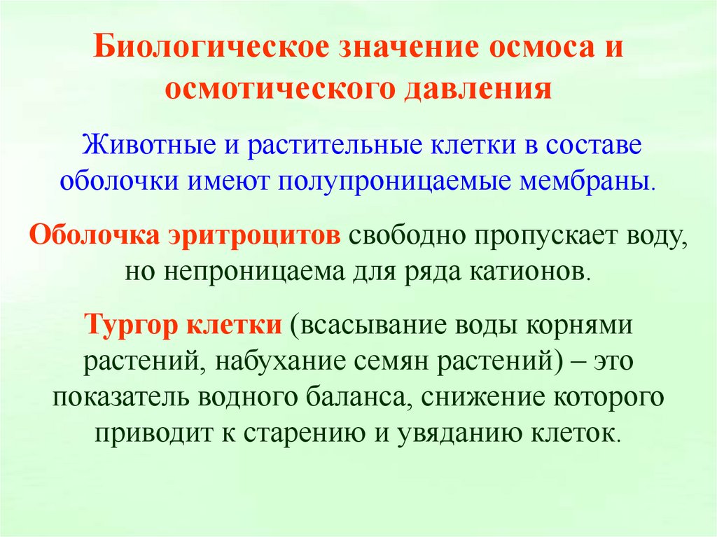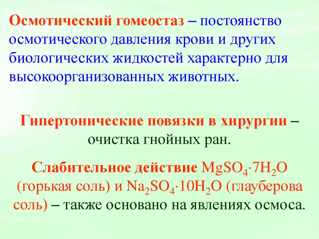 Осмотический гомеостаз – постоянствоосмотического давления крови и других
