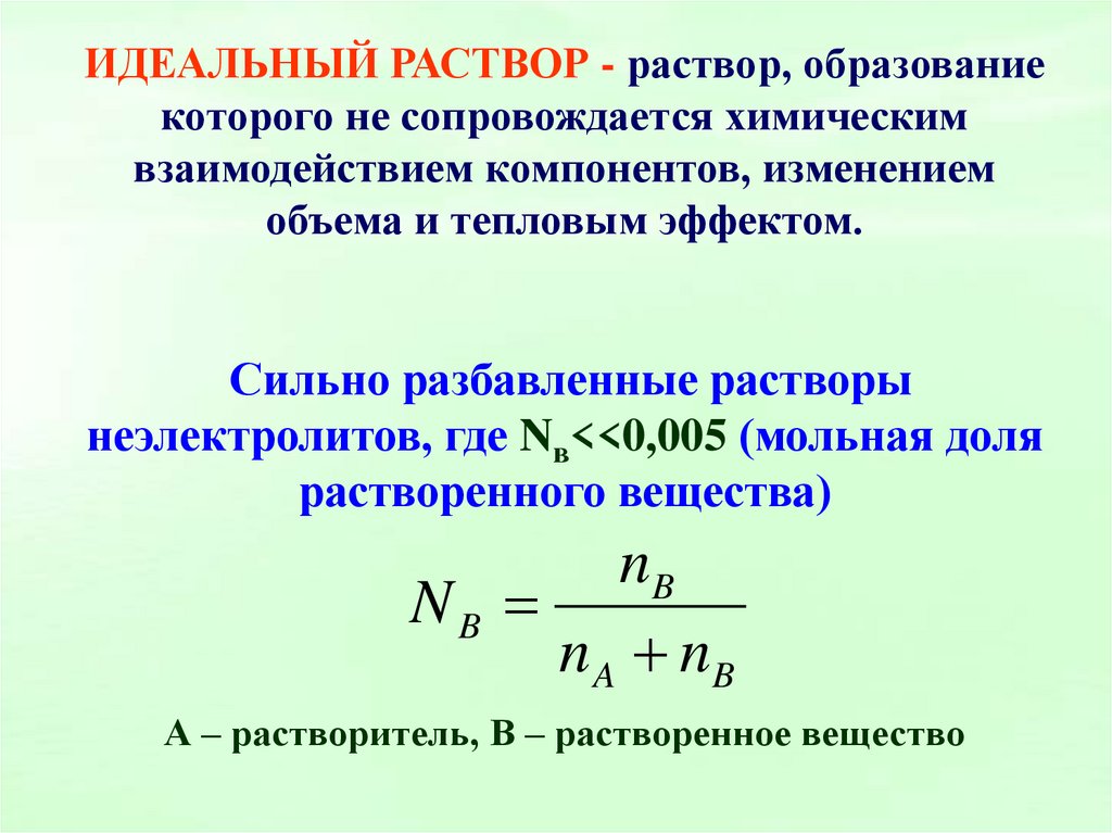 ИДЕАЛЬНЫЙ РАСТВОР - раствор, образованиекоторого не сопровождается химическим