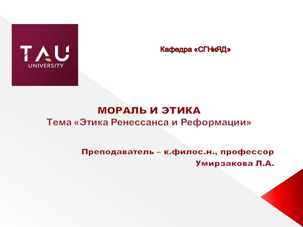 ЛЕКЦИЯ Этика Ренессанса и Реформации