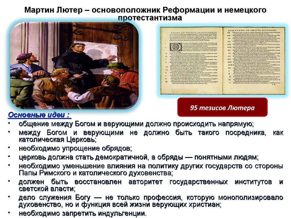 • церковь должна стать демократичной, а обряды — понятными людям;