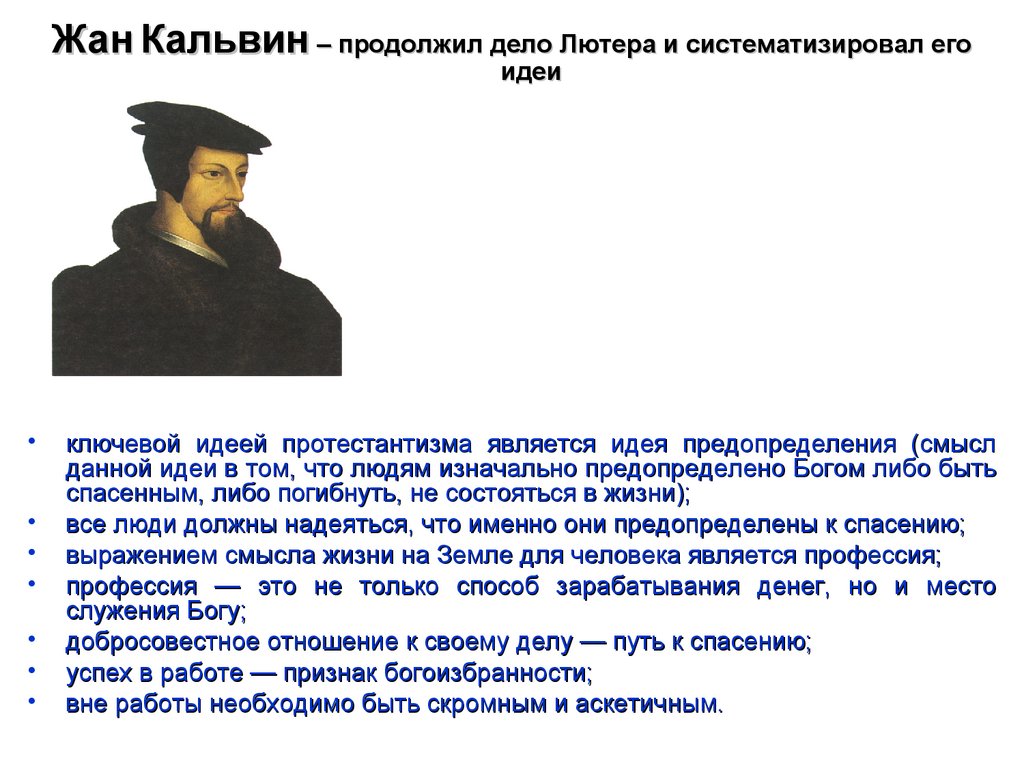 Жан Кальвин – продолжил дело Лютера и систематизировал егоидеи