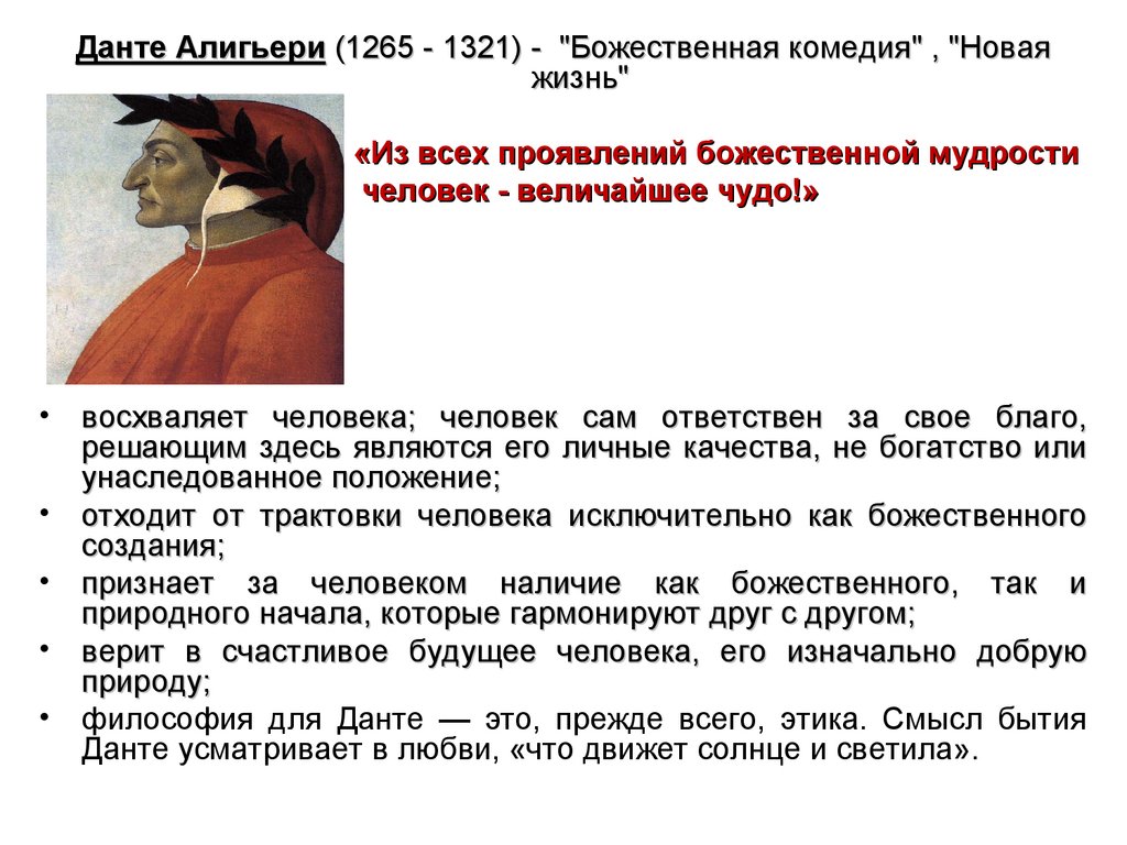 Данте Алигьери (1265 - 1321) - "Божественная комедия" , "Новаяжизнь"