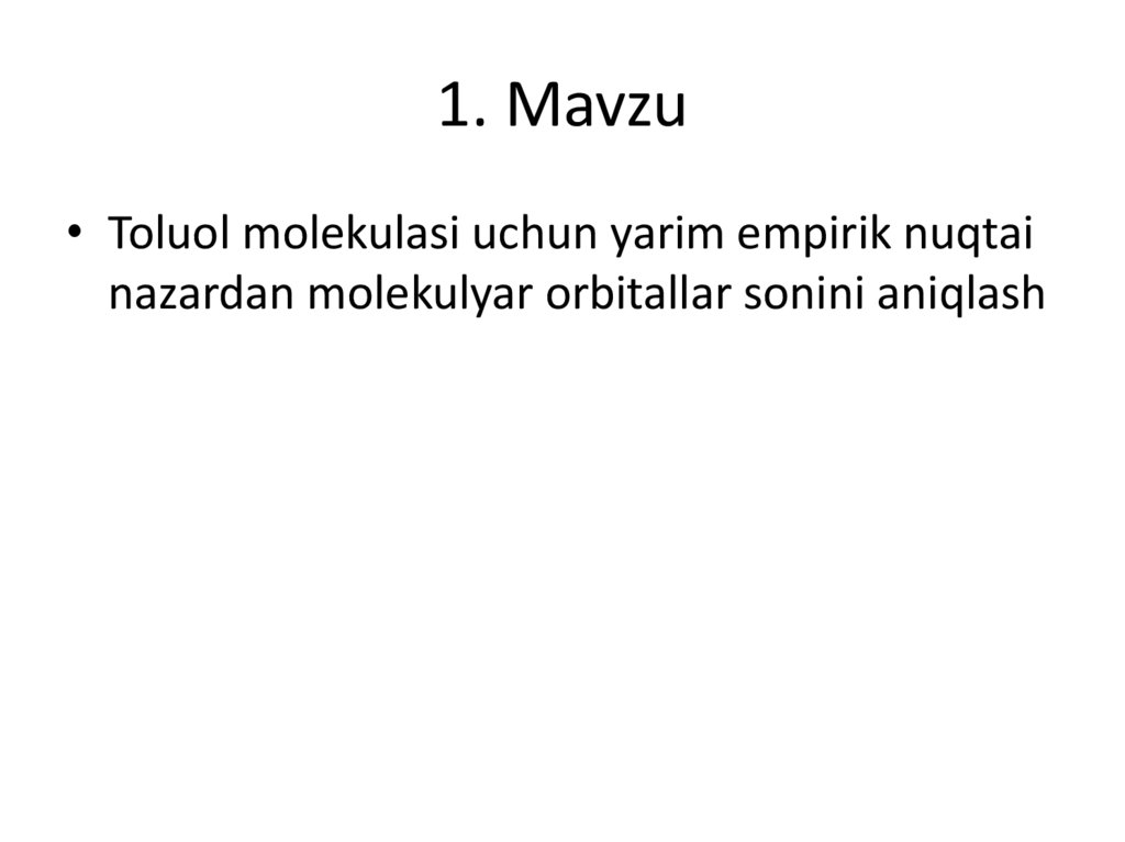 1. Mavzu• Toluol molekulasi uchun yarim empirik nuqtai