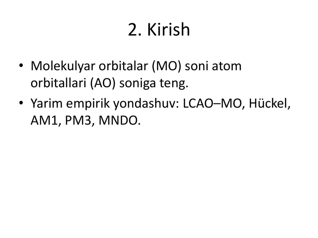 2. Kirish• Molekulyar orbitalar (MO) soni atom