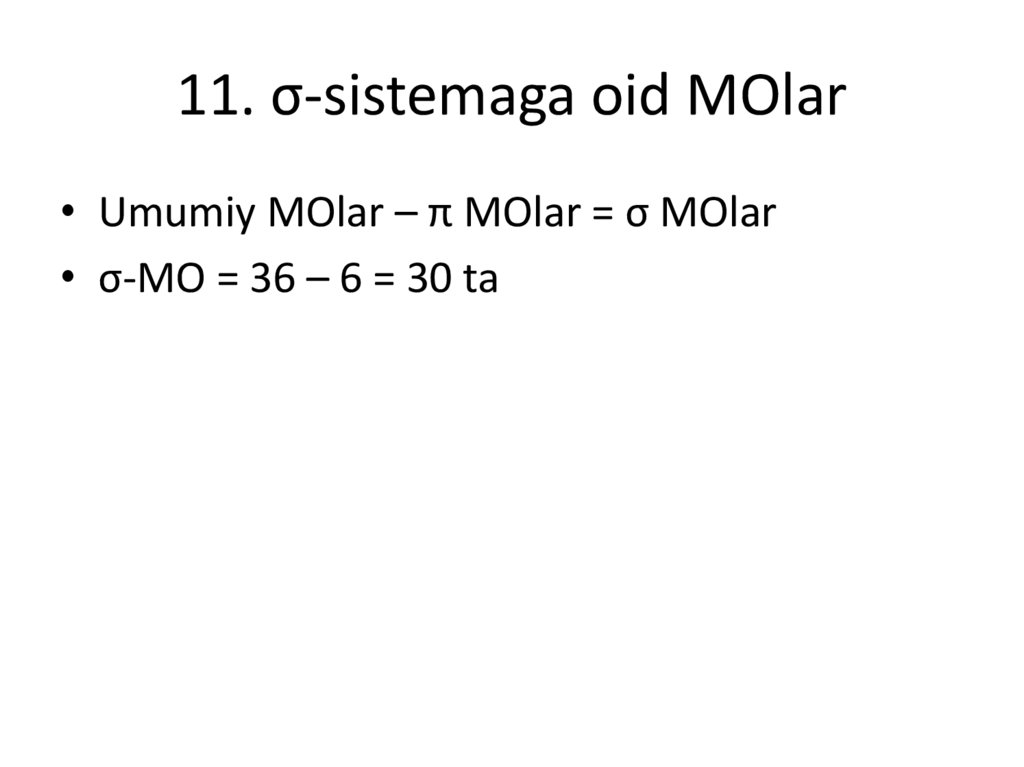 11. σ-sistemaga oid MOlar• Umumiy MOlar – π MOlar = σ MOlar
