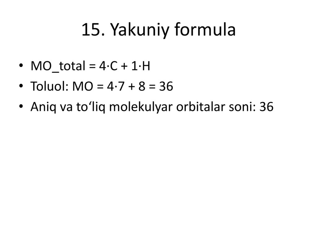 15. Yakuniy formula• MO_total = 4·C + 1·H
